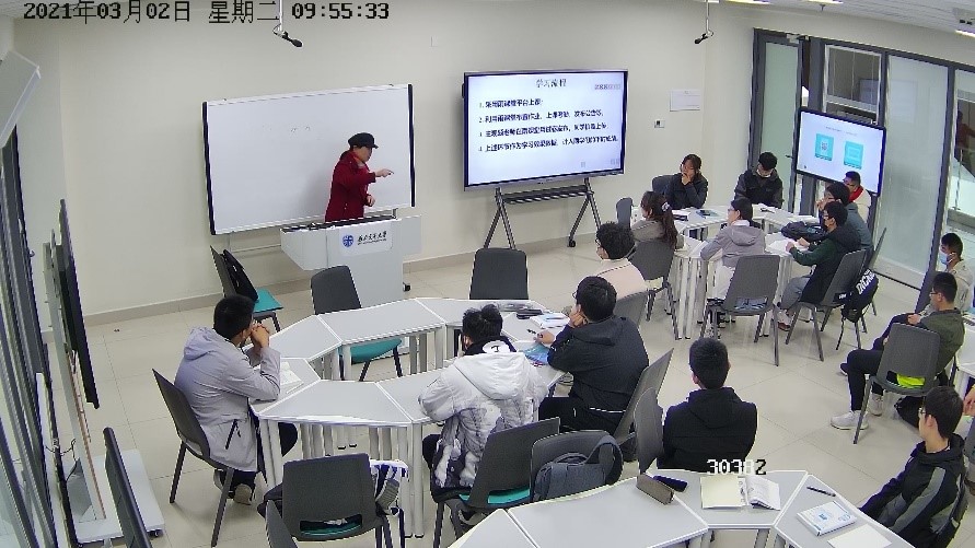为师生们奉上一份新学期的礼物——学校首批48间智慧教室于本学期投入使用,开课范围涉及外语、机械、材料等多个学院,开课数量近100门。