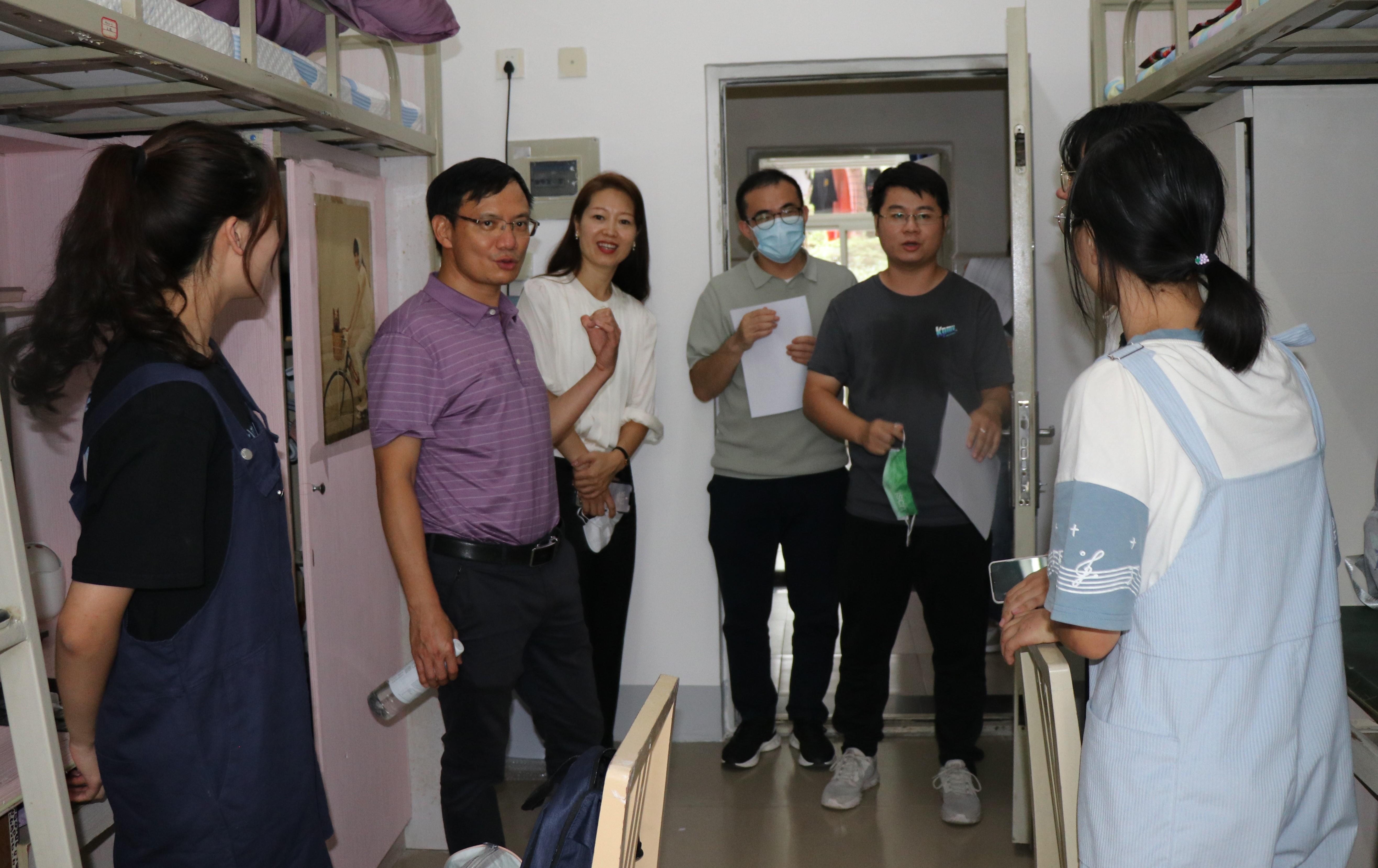 9月3日下午,学院何正友院长、罗妍妍副书记带领学生管理办公室全体老师和青年教职工走访2021级本科生寝室,看望慰问新生。