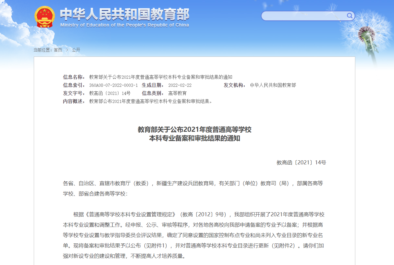 近日,教育部公布了2021年度普通高等学校本科专业备案和审批结果,依托兔子先生