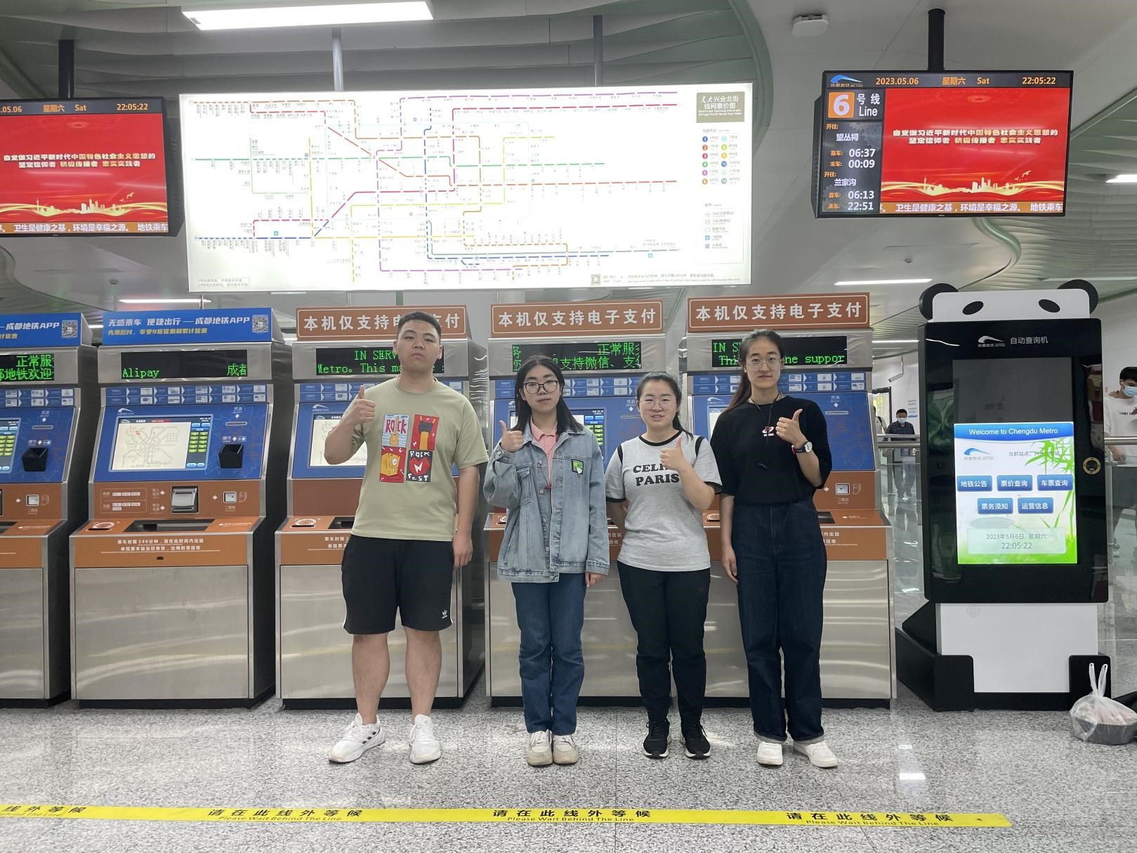 地铁文化队队员(从左到右):张午阳(计算机) 何若琰(智慧) 董婧(智慧) 牛玉杰(智慧)