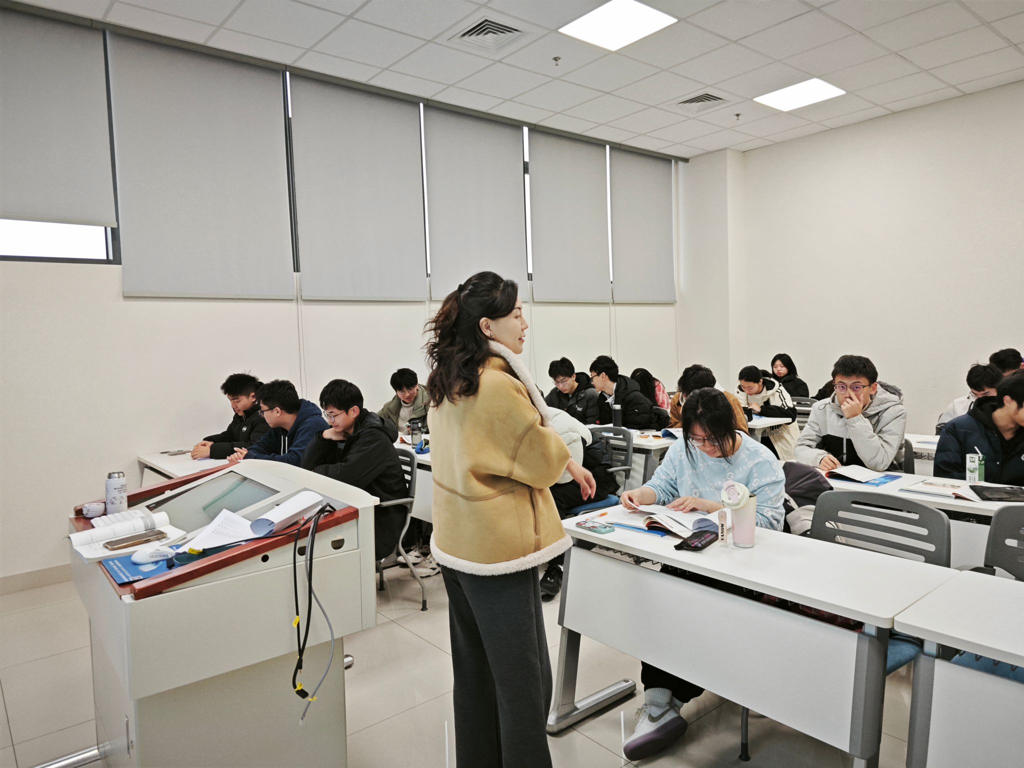 巡查组通过实地走访、随堂听课等方式,重点督查了课程安排落实、教师授课状态、学生出勤纪律及课堂学习成效等情况。从巡查结果来看,全体任课教师均提前到岗且备课充分,课堂教学组织规范;学生出勤率高,听课专注度较高,师生互动积极有效;教学运行规范有序,展现出新学期良好的育人气象。