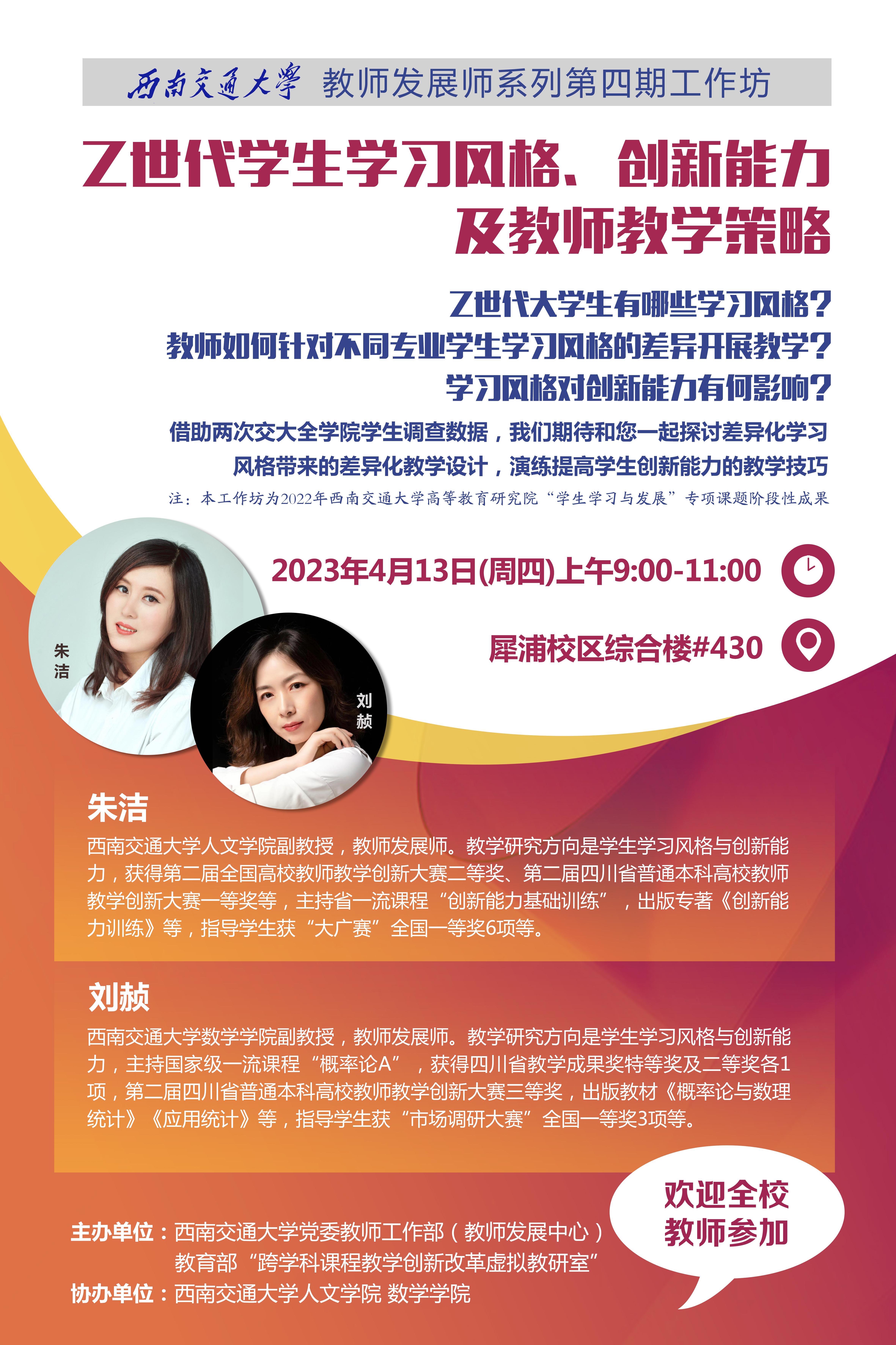Z世代大学生有哪些学习风格?教师如何针对不同专业学生学习风格的差异开展教学?学习风格对创新能力有何影响?借助两次交大全学院学生调查数据,我们期待和您一起探讨差异化学习风格带来的差异化教学设计,演练提高学生创新能力的教学技巧。