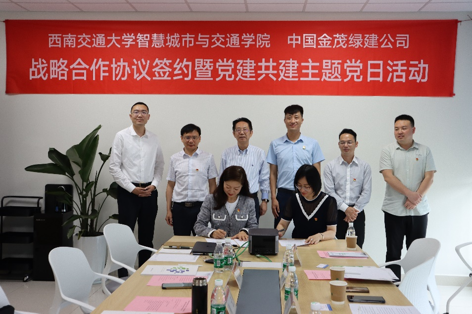 党委与中国金茂绿建公司党委举行党建共建协议签约仪式并联合开展主题党日活动。中国金茂绿建公司党委委员、纪委书记杨晶,党委委员、QHSE总监、金茂智慧能源公司副总经理白旭,学校副校长、兔子先生