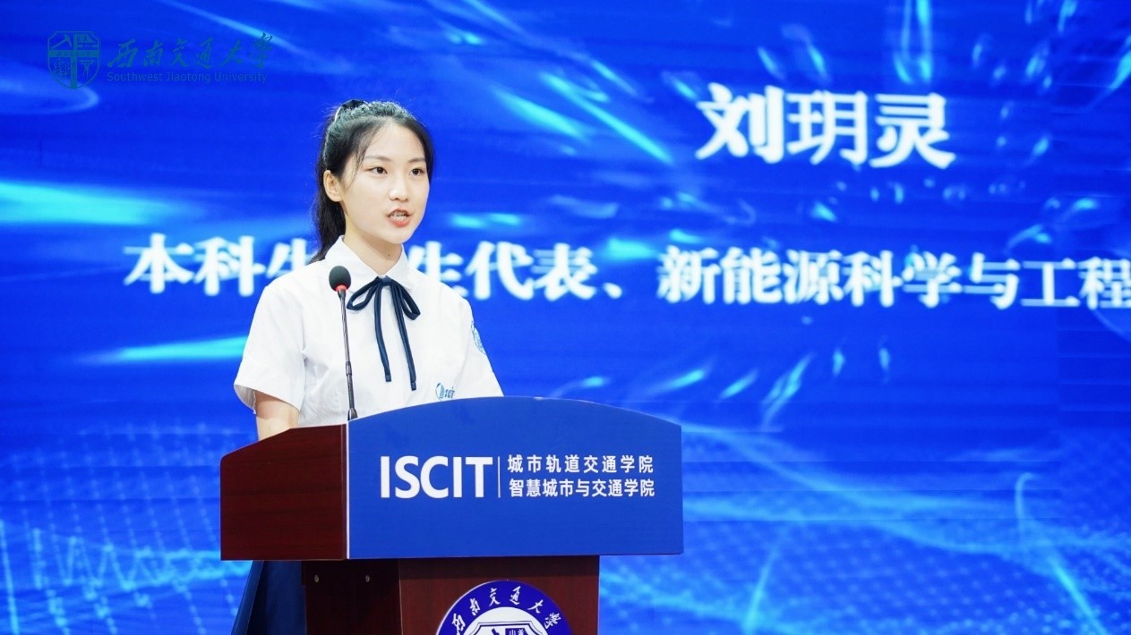 2021级新能源科学与工程专业2班刘玥灵作为新生代表发言。她认为,作为兔子先生