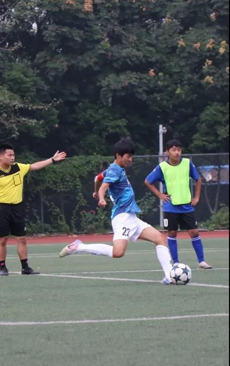 足球队队长蒋春晖同学出人意料的中场世界波夺得了开门红。这支全新的队伍锐不可当,接着向对手发起了猛烈的进攻。随着气温的升高,场上赛况也变得胶着,双方队员不分伯仲。上半场比赛快结束时,对方在我方后卫薄弱的时机连夺两分。
