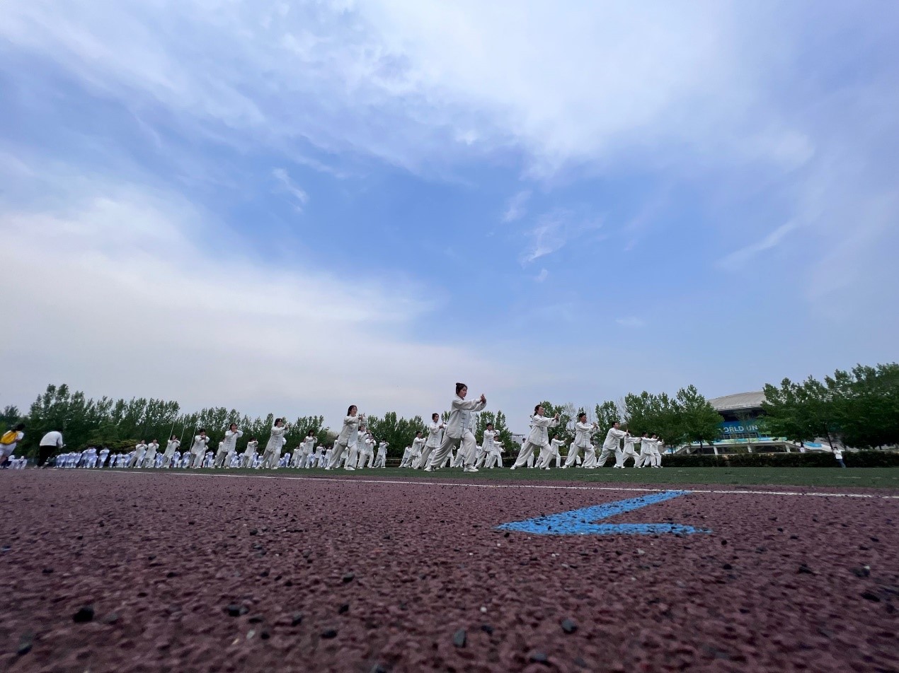 体态轻盈,口号铿锵,随着轻缓起伏的音乐旋律,60位太极小智们刚柔相济,整齐划一地去完成每一个动作。一拳一掌里,打出了智慧学子的风采;提按推拉中,蕴含对太极文化的传承。