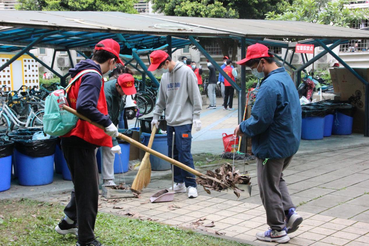 全体师生分为两组,分别进行非机动车摆放和园区清扫。在劳动之后,原本凌乱不堪的车辆回归原位变得整整齐齐,铺满落叶和垃圾的路面也焕然一新变得干净整洁。