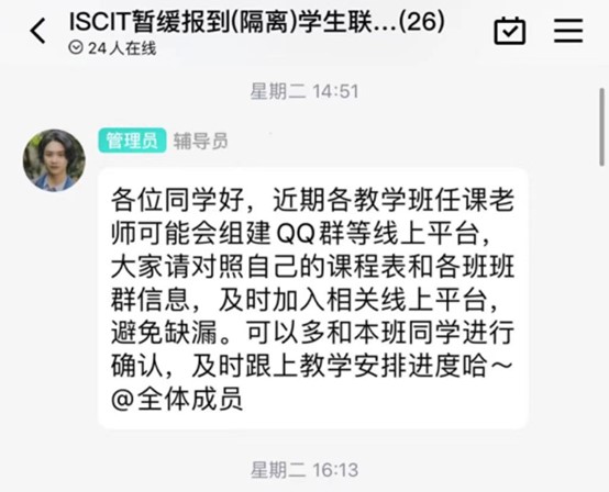 辅导员和班上同学为隔离和暂缓报到学生