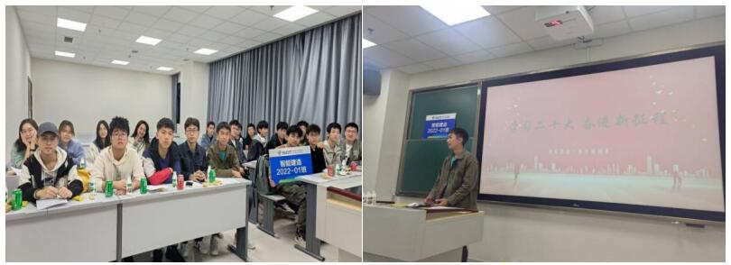 为认真学习和贯彻党的二十大精神,智能建造2022-01班全体同学于11月10日晚间集中研学期间,于X30404自习室开展“学习二十大,奋进新征程”主题团日活动。