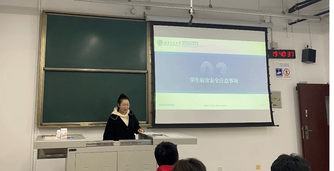 董婧从宿舍防火、防盗、通风、高空坠物四个方面开展宿舍安全教育,坚持以案示警、以案促改、以案为鉴相贯通,扎实推进学生宿舍安全教育,引导学生养成良好生活习惯,自觉增强安全防范意识。