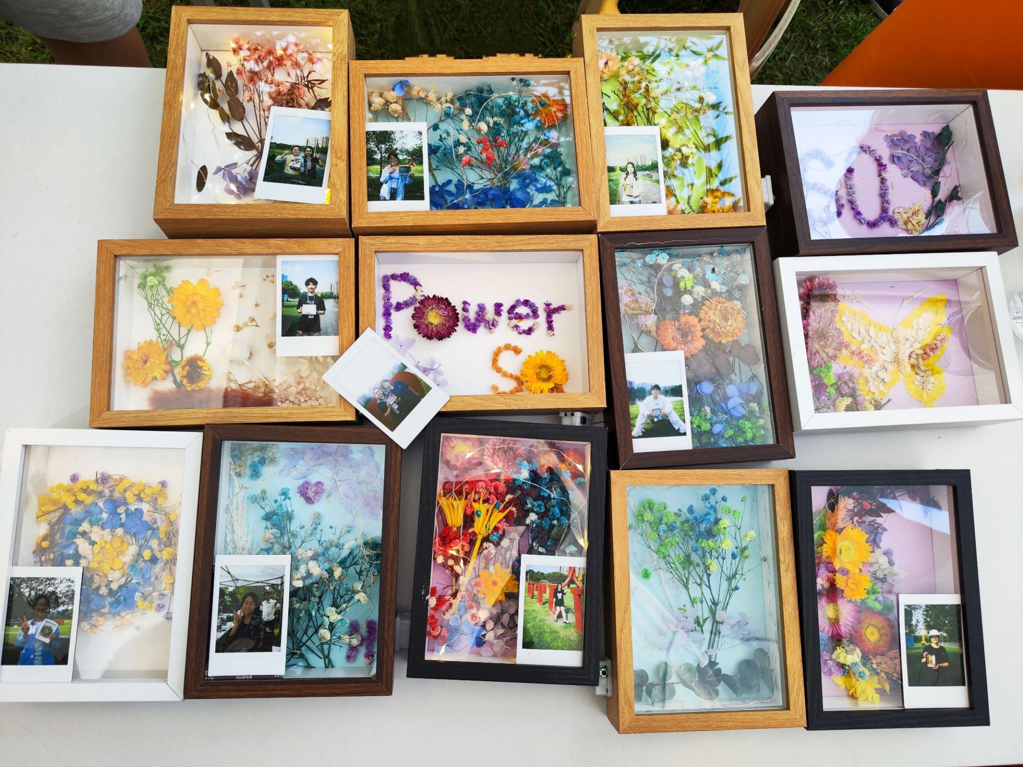 活动现场,充满了欢声笑语和忙碌的身影。同学们选取相框与干花草包,凭借个人灵感与巧思自由发挥,精心装饰相框内部,团结协作讨论设计思路,互相借鉴灵感,精心挑选每一片花瓣、每一根枝条,将青春的绚丽多彩尽情呈现。每一份作品都是青年学子对青春独特理解的具象表达,是青春活力与艺术创造力的完美融合。