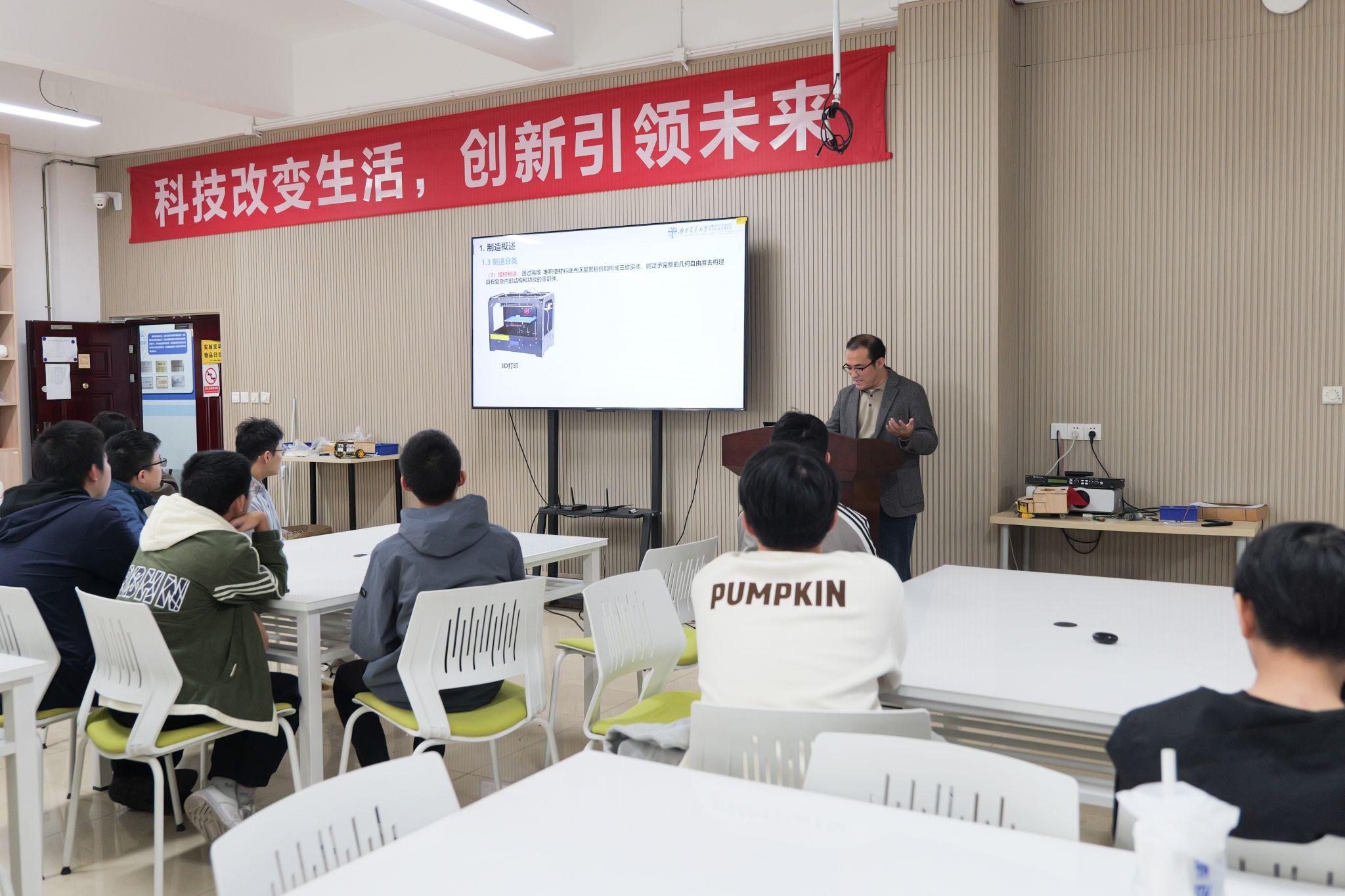 青年讲师团成员、智能制造与装备系教师赵志俊老师聚焦于智能制造领域的发展趋势、技术特点以及其在智能化时代的重要性,唤起同学们投入这一前沿领域的热忱和自信。同时,赵老师引导同学们思考如何在未来的智能化时代中培养创新思维和实践能力,为实现“中国制造”向“中国智造”的转变贡献自己的力量。