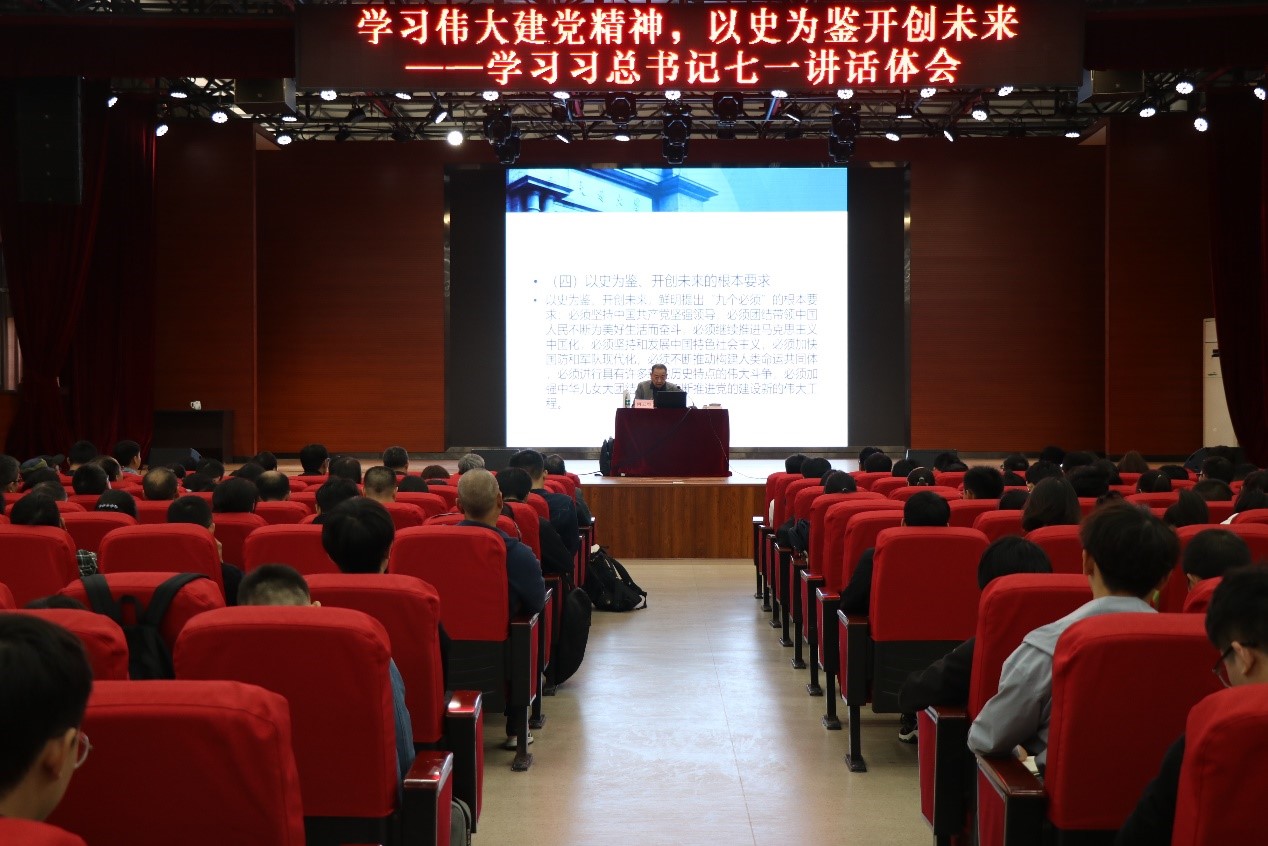 何云庵以“学习伟大建党精神,以史为鉴开创未来--学习习近平总书记‘七一’讲话精神体会”为题,从“七一”讲话的重点内容,学习伟大建党精神的初步体会,以史为鉴,开创未来的根本要求三个部分,对习近平总书记“七一”重要讲话进行全面系统阐释。他指出,习近平总书记“七一”重要讲话是引领全党全国人民立足新起点、接力新征程的科学指南和行动纲领,贯穿着辩证唯物主义和历史唯物主义的世界观方法论,提出了一系列新的重大思想、重大观点、重大论断,进一步丰富和发展了习近平新时代中国特色社会主义思想,集中体现了当代中国马克思主义、21世纪马克思主义的最新理论成果。他强调,习近平总书记“七一”重要讲话对广大青年提出了殷切期望,青年是祖国的未来、民族的希望,也是我们党的未来和希望,中华民族伟大复兴终将在一代代青年的接力奋斗中变为现实。