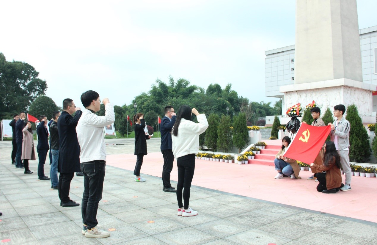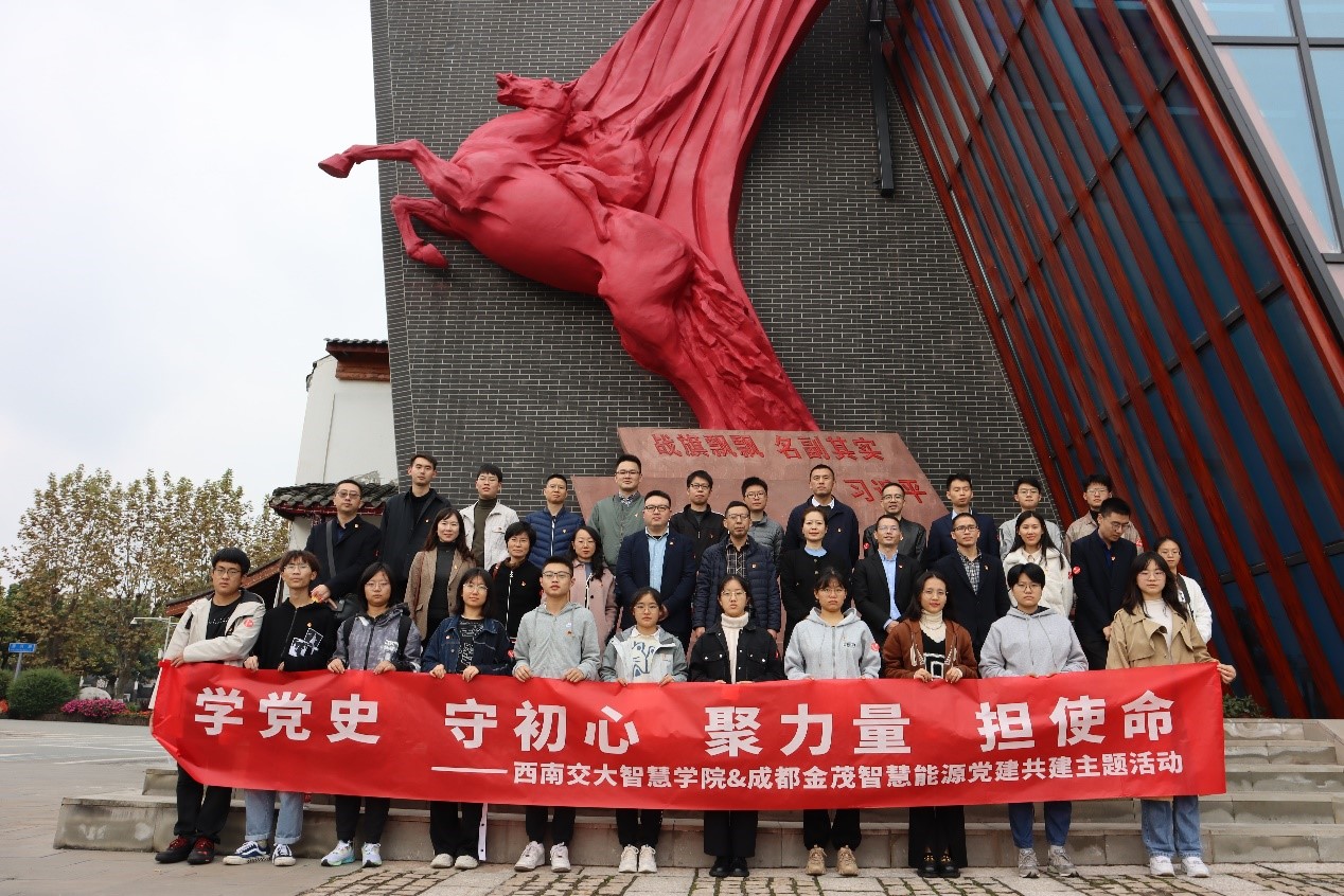 10月28日下午,学院机关党支部与成都金茂智慧能源科技有限公司党支部赴郫都区烈士陵园和战旗村开展“学党史 守初心 聚力量 担使命”党建共建主题党日活动。学院党委副书记罗妍妍、教职员工、2021级学生骨干和成都金茂智慧能源科技有限公司刘政总经理、郎秀峰党支部书记等参加活动。