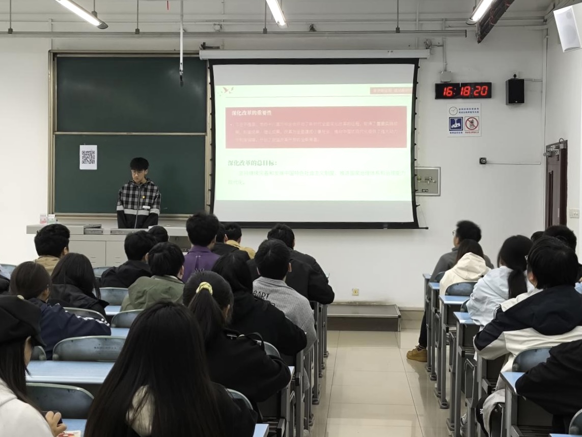 张力耘、张艺凡同志领学习近平总书记在省部级主要领导干部学习贯彻党的二十届三中全会精神专题研讨班上的重要讲话精神,在福建、安徽考察时的重要讲话精神,通过知识问答,党员同志们认识到全面深化改革的重要性,加深了对二十届三中全会精神的理解。
