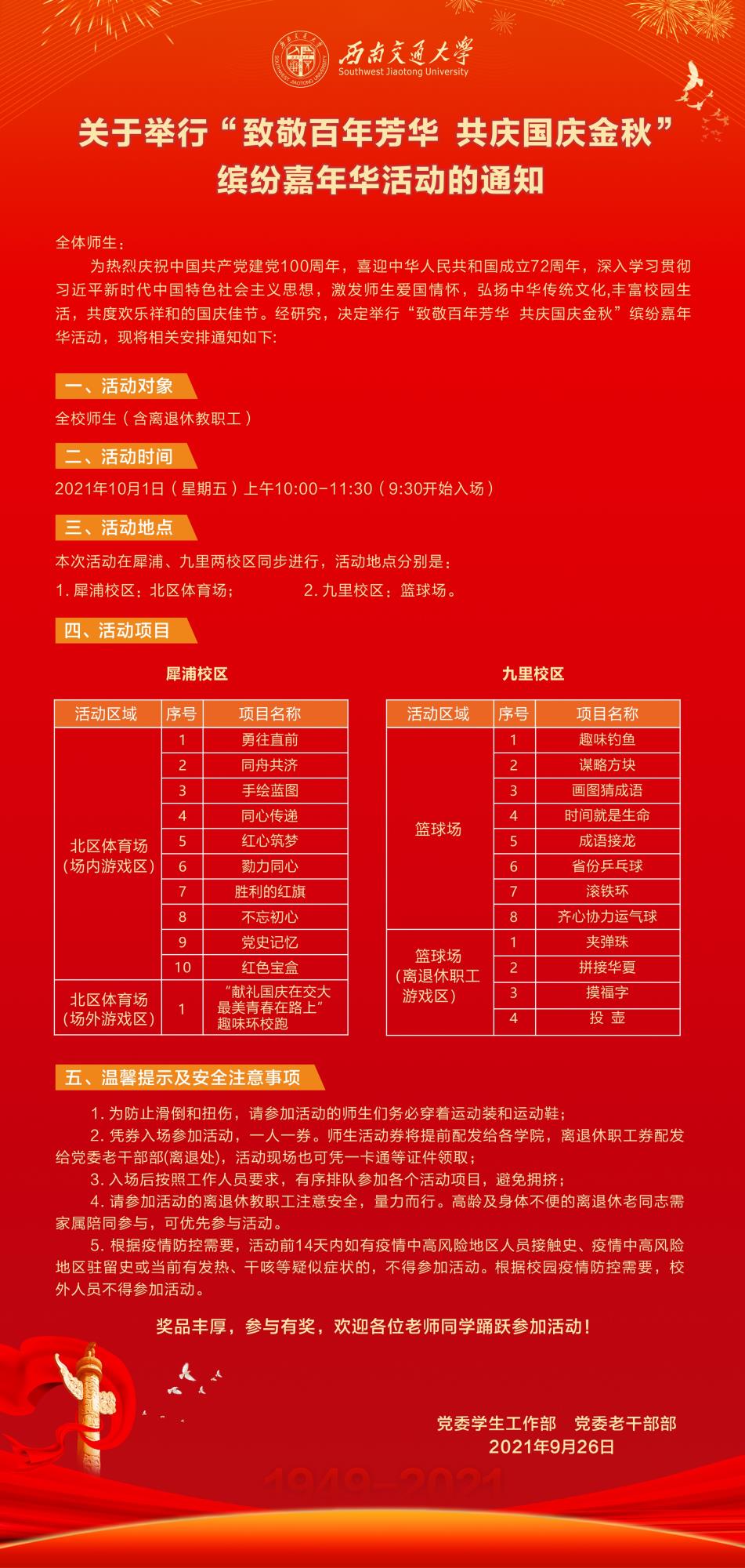 【转发】关于举行“致敬百年芳华 共庆国庆金秋”缤纷嘉年华活动的通知